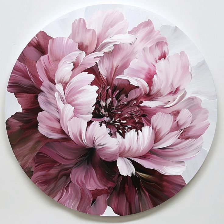ویژگی خاص: شکوفه گل پیونی با رنگ روغن روی بیس چوبی